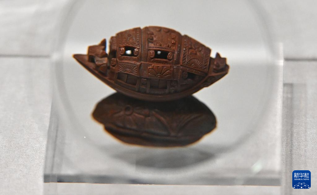 这是清代《东坡游赤壁》橄榄核雕(1月31日摄)。