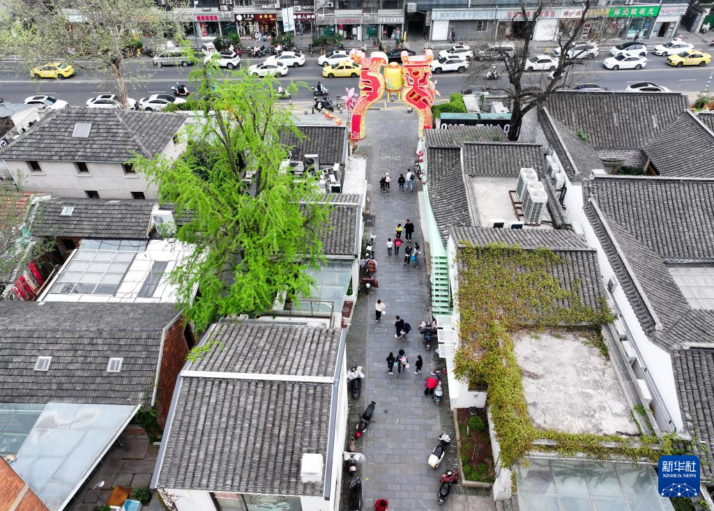 游客在小西湖街区休憩(4月1日摄,无人机照片)。