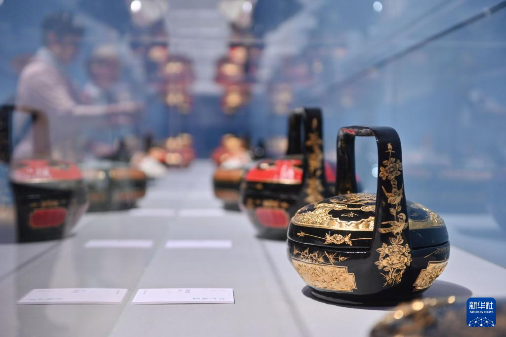 6月2日,观众在“何以永春”千年海丝非遗艺术展上了解永春漆篮工艺品。