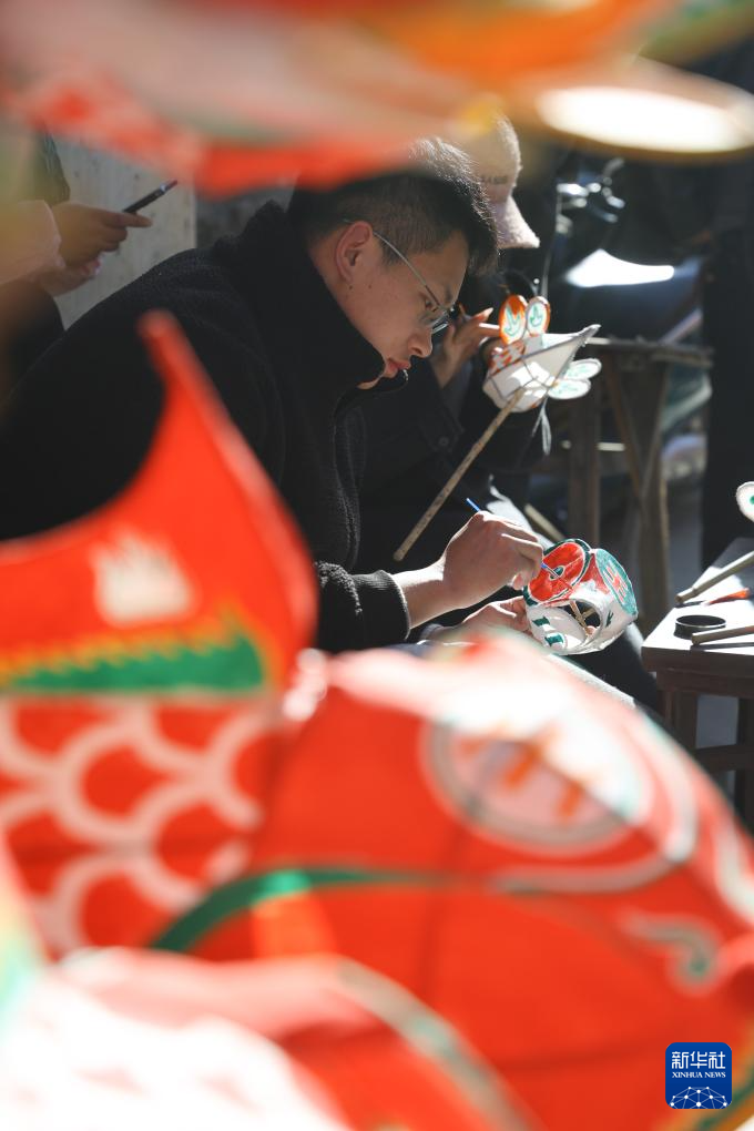 1月6日,在安徽省黄山市歙县北岸镇瞻淇村,村民在制作鱼灯。
