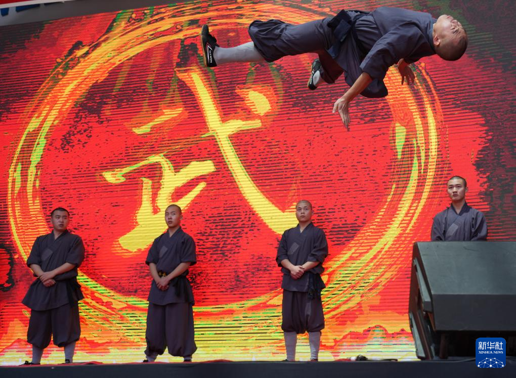 1月19日,少林武僧在肯尼亚首都内罗毕举行的中国春节庙会活动上表演。