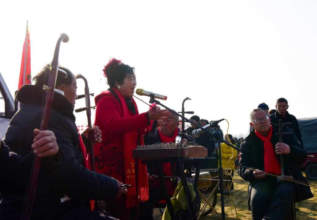 当日是农历正月十三,在河南省平顶山市宝丰县马街村,一场曲艺说唱盛宴在麦田里拉开大幕。来自全国各地的说书艺人聚集于此,吹拉弹唱,说书会友,南腔北调,好不热闹。