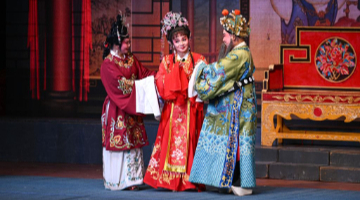 9月22日晚,演员在完成“相约敦煌”国际文化交流演出活动后返场谢幕。