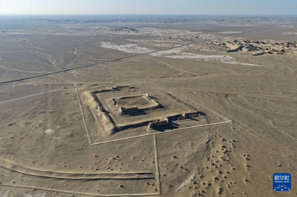 这是11月3日在内蒙古阿拉善盟额济纳旗拍摄的居延遗址中的唐代大同城遗址(无人机照片)。