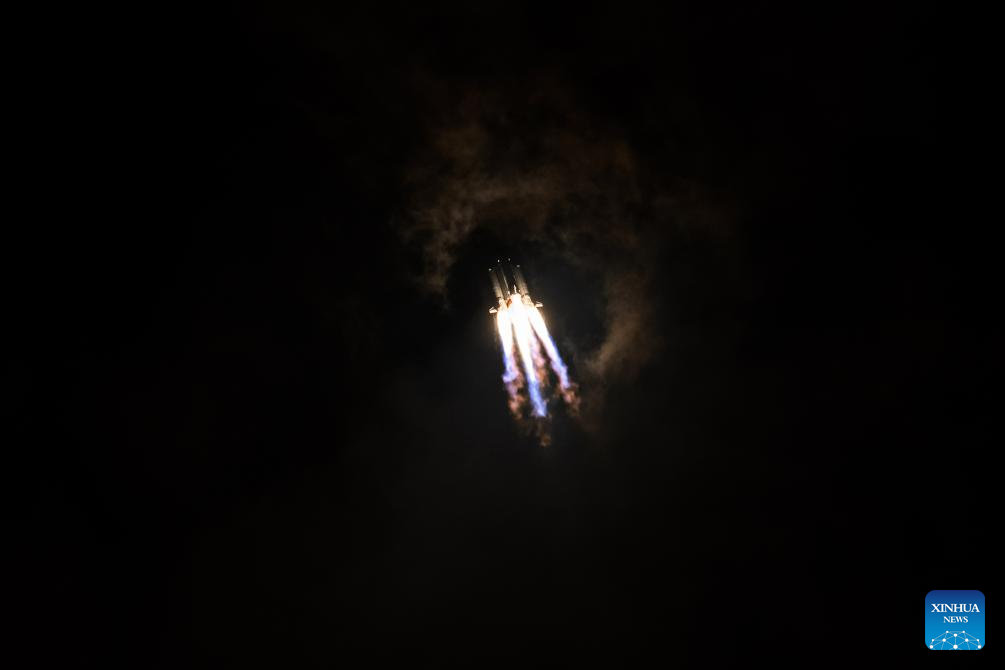 A Long March-5 rocket carrying a new communication technology test satellite blasts off from the Wenchang Space Launch Site in south China's Hainan Province, Dec. 20, 2025. Launched at 8:30 p.m. (Beijing Time), the satellite has successfully entered its planned orbit. It will be mainly used to carry out multi-band and high-speed communication technology validation tests. The launch marks the 618th mission by the Long March carrier rocket series. (Photo by Du Xinxin/Xinhua)