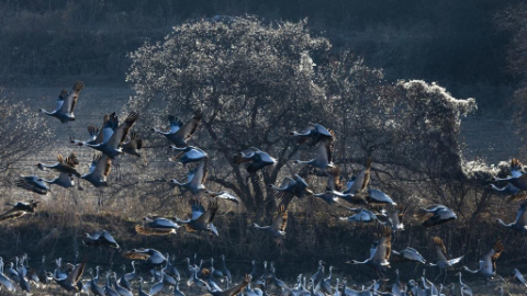 Migratory birds seen at Donggu Lake in Hunan, C China