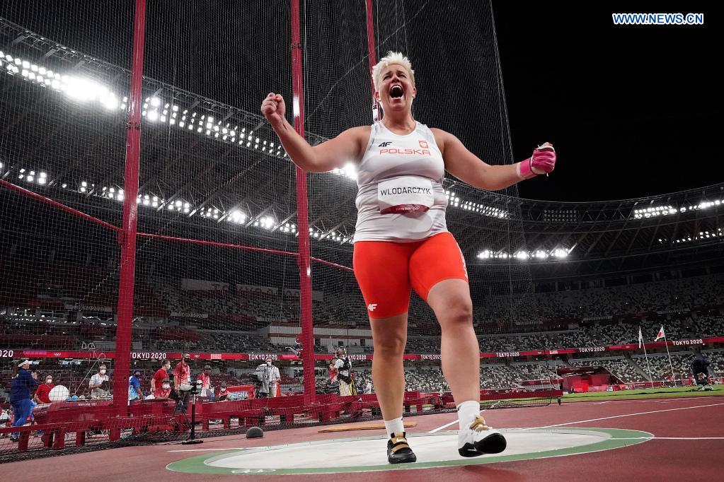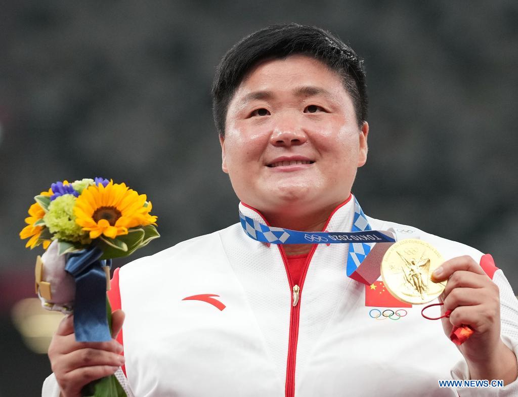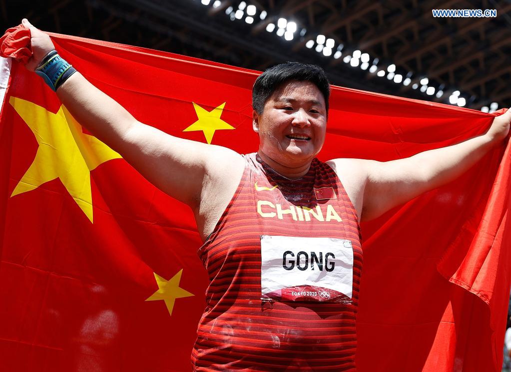 TOKYO, Aug. 1 (Xinhua) -- China's Gong Lijiao dominated in women's shot put at Tokyo Olympics on Sunday, winning her first Olympic gold medal. The victory marked China's first Olympic gold in field events.