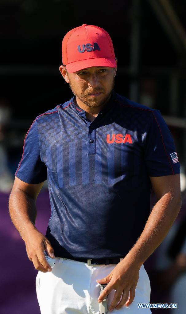 Xander Schauffele of the United States competes during the men's individual stroke play round 4 golf match at Tokyo 2020 Olympics in Saitama, Japan, Aug. 1, 2021. (Xinhua/Liu Dawei)