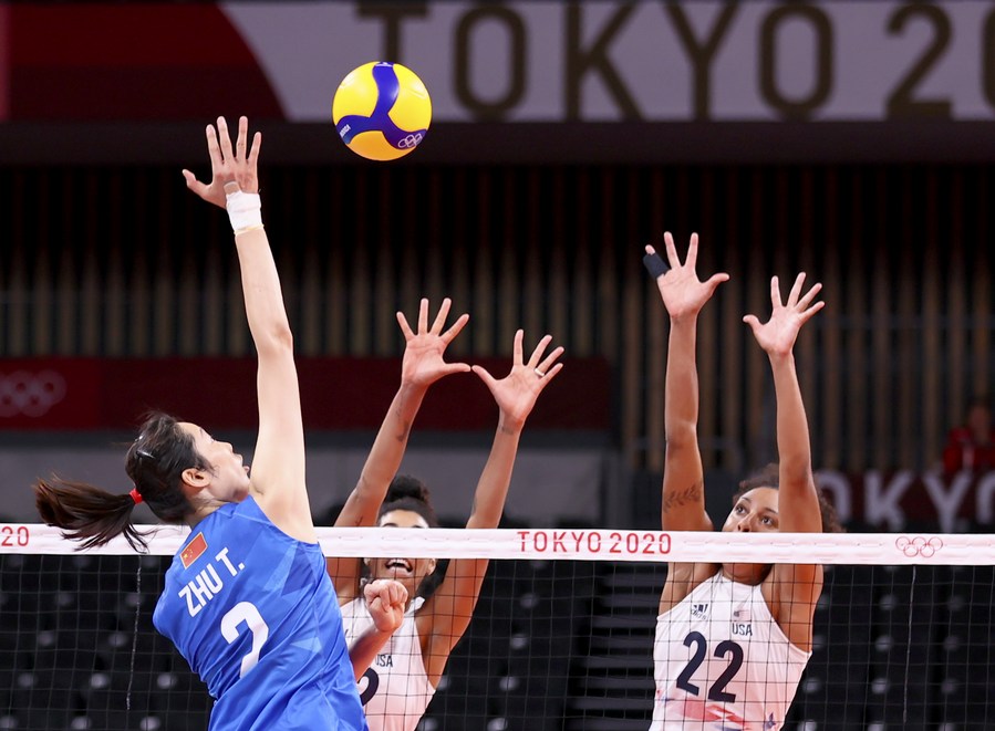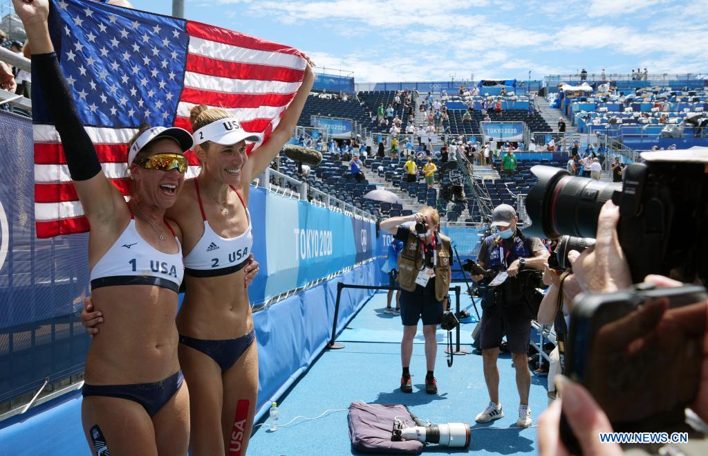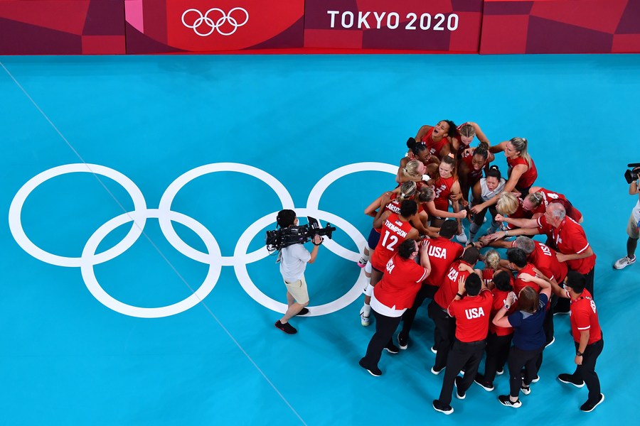 TOKYO, Aug. 8 (Xinhua) -- The United States swept Brazil 3-0 in the women's volleyball final here on Sunday to win their first Olympic gold medal.