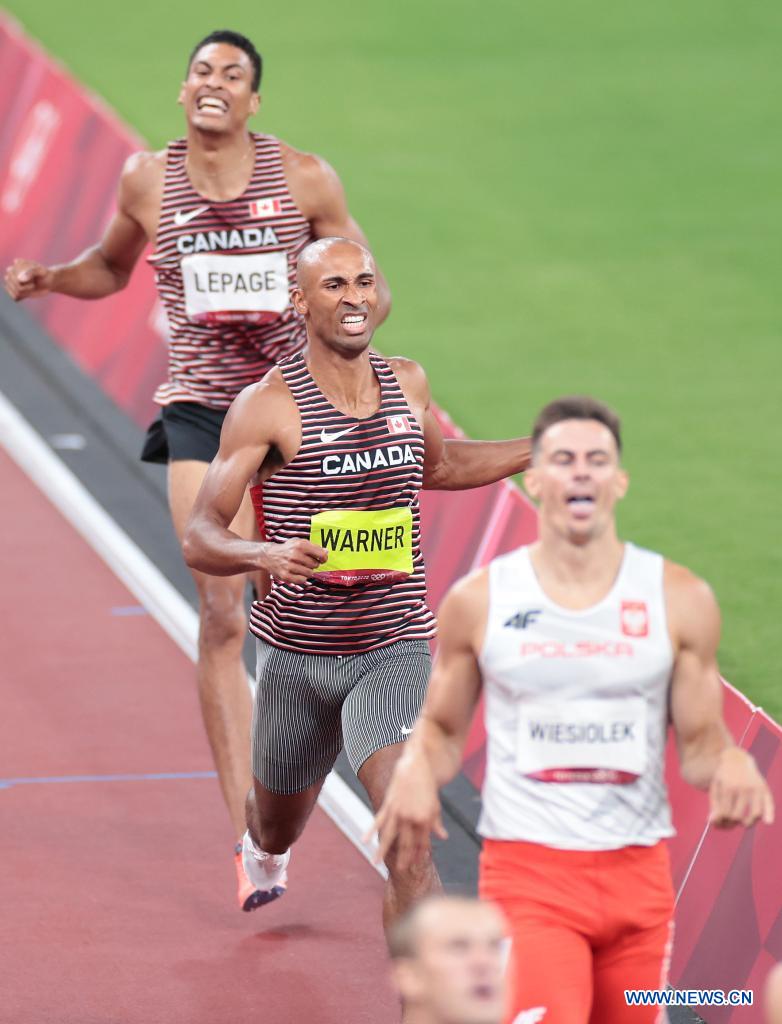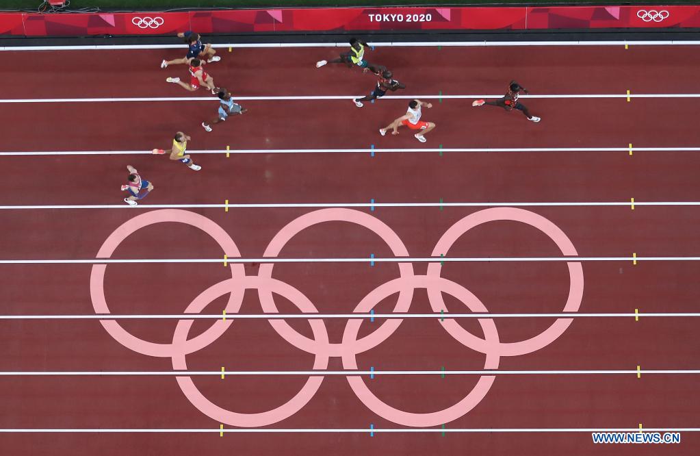 Karsten Warholm of Norway competes during the Men's 400m Hurdles Final at the Tokyo 2020 Olympic Games in Tokyo, Japan, Aug. 3, 2021. (Xinhua/Wang Lili)