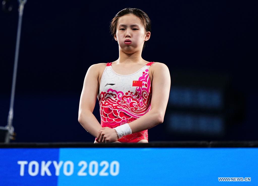Shi Tingmao of China competes during the women's 3m springboard final of diving at Tokyo 2020 Olympic Games in Tokyo, Japan, Aug. 1, 2021. (Xinhua/Wang Jingqiang)