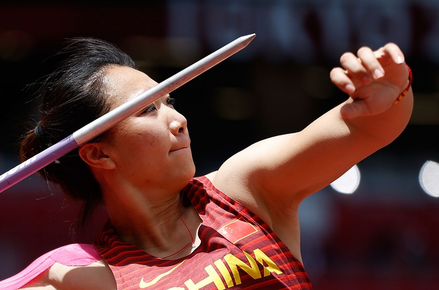 Liu Shiying of China competes during the Women's Javelin Throw Qualification at the Tokyo 2020 Olympic Games in Tokyo, Japan, Aug. 3, 2021. (Xinhua/Wang Lili)