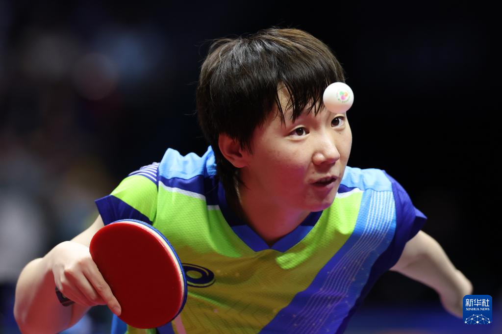 11月16日,黑龙江队选手王曼昱在比赛中回球。