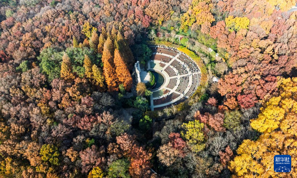 11月30日拍摄的江苏南京钟山风景名胜区音乐台初冬景观(无人机照片)。