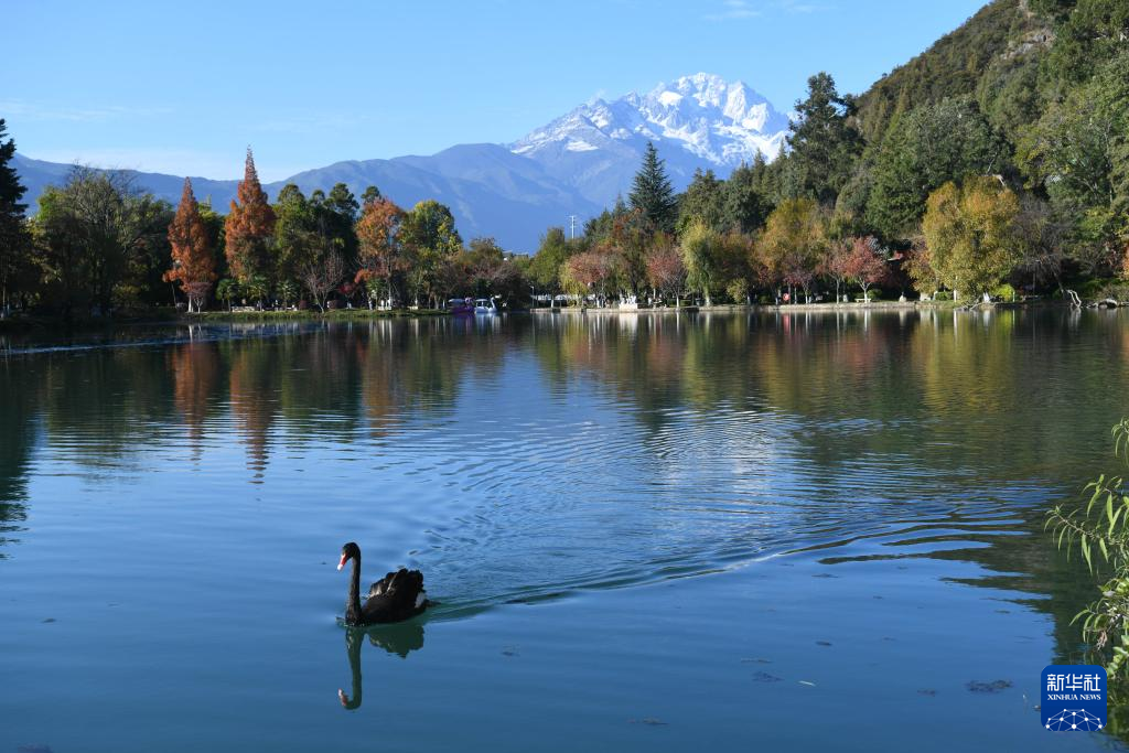 这是11月28日在云南丽江黑龙潭公园拍摄的玉龙雪山美景。