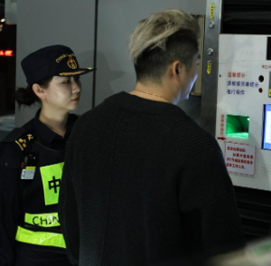 12月23日,“粤车南下”入境香港市区的首位通关车主彭先生(中)在“一站式”通道办理通关手续。新华社记者 黄国保 摄