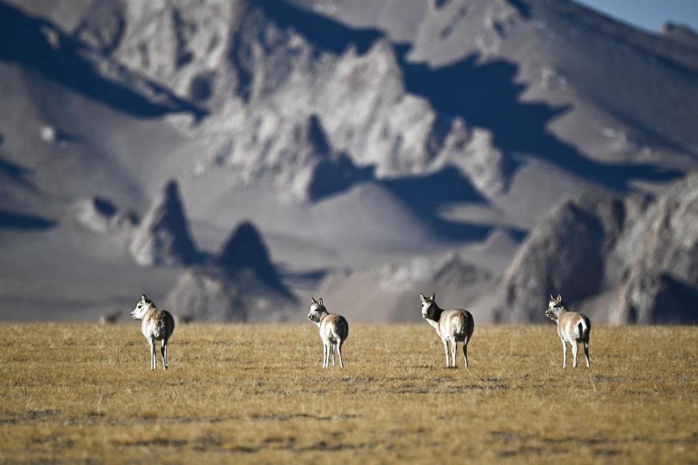 在羌塘国家级自然保护区拍摄的藏羚羊(12月4日摄)。