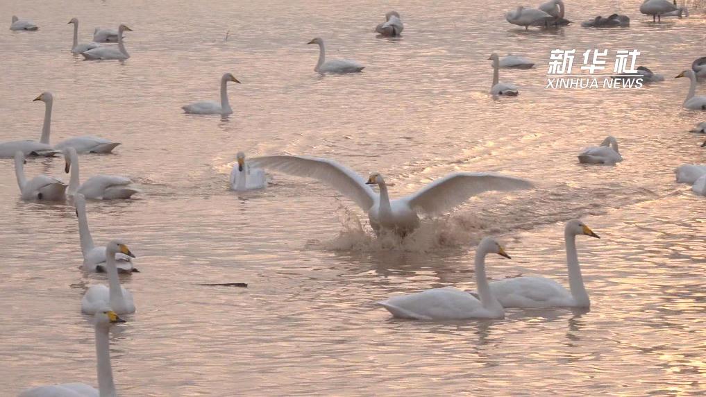 在山西平陆黄河湿地保护区,一批批来自西伯利亚的野生大天鹅陆续飞抵,开始越冬。据悉,自10月底起,大天鹅已开始分批抵达黄河湿地,目前该区域观测到的越冬天鹅已超5000只,到明年一、二月份可达上万只。它们悠然自得的身影,为黄河岸畔增添了一道灵动的风景线。