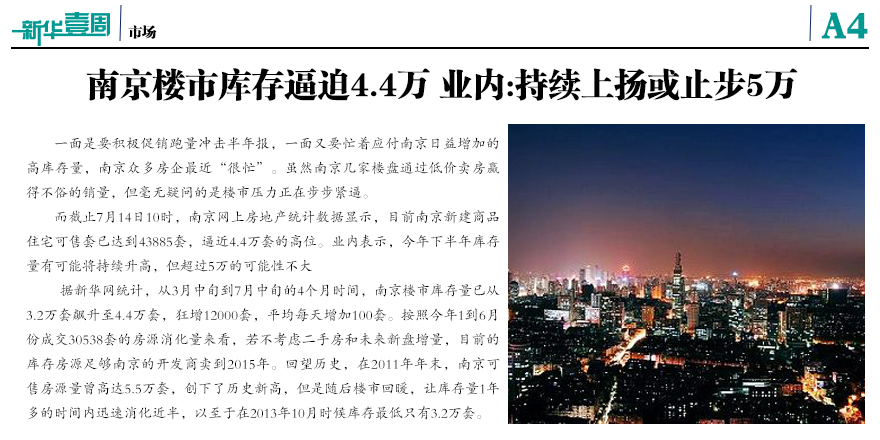 南京樓市庫存逼迫4.4萬套