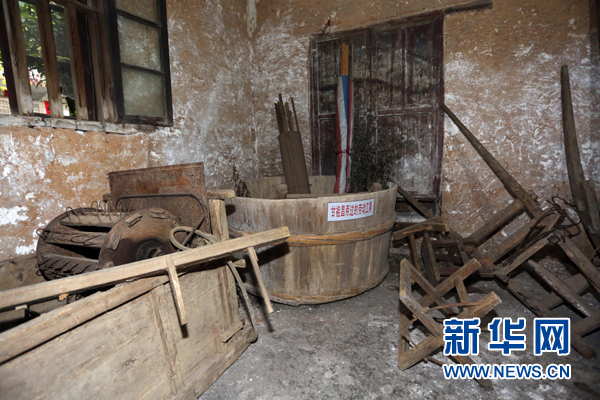 江西蓮花縣沿背村甘祖昌將軍故居中擺放著他曾經(jīng)使用過的勞動(dòng)工具(3月29日攝)。新華社發(fā)