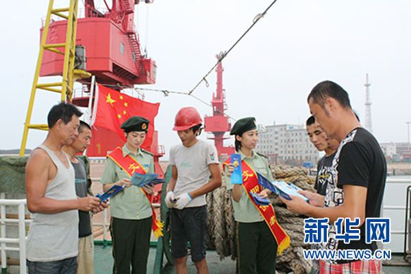 濰坊邊檢官兵正在向群眾發(fā)放宣傳冊(cè)。??????