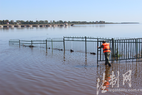 ????連日來(lái),受俄羅斯上游水庫(kù)泄洪影響,黑龍江名山段水位迅猛上漲,給蘿北口岸通關(guān)安全帶來(lái)嚴(yán)重威脅。面對(duì)此情況,黑龍江邊防總隊(duì)蘿北邊防檢查站官兵采取多項(xiàng)措施,全力確??诎俄槙惩P(guān)。