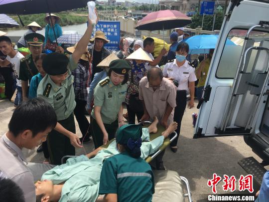 圖為邊檢官兵救助車禍越南籍男子?!×昼胝z