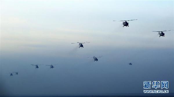????陸軍第79集團軍某陸航旅在復(fù)雜條件下組織大集群編隊演練,提高實戰(zhàn)化水平(2018年1月5日攝)。 新華社發(fā)(李寧 攝)
