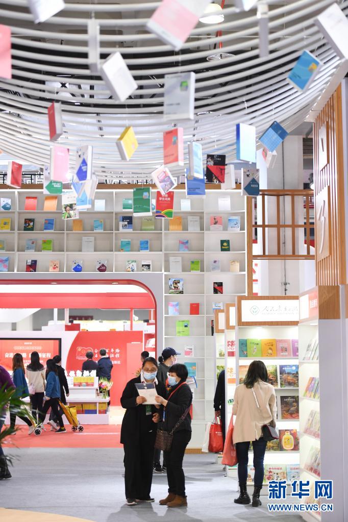 3月31日,參展人員在2021北京圖書(shū)訂貨會(huì)上參觀。