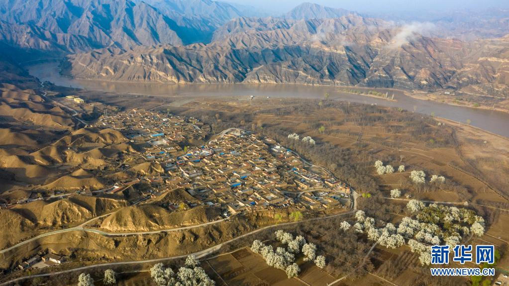 這是位于寧夏中衛(wèi)市黃河黑山峽河段的南長灘村(4月5日攝,無人機照片)。