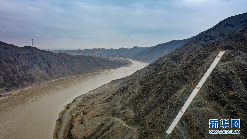 這是位于寧夏中衛(wèi)市黃河黑山峽河段的水位標記(4月3日攝,無人機照片)。