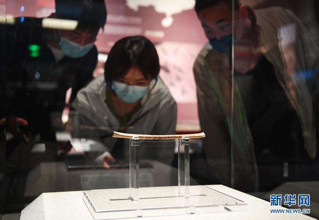 4月5日,參觀(guān)者在觀(guān)看河南博物院展出的骨笛。