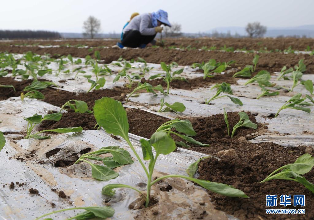 4月20日,甘肅省定西市安定區(qū)香泉鎮(zhèn)農(nóng)民在移栽甘藍(lán)苗。