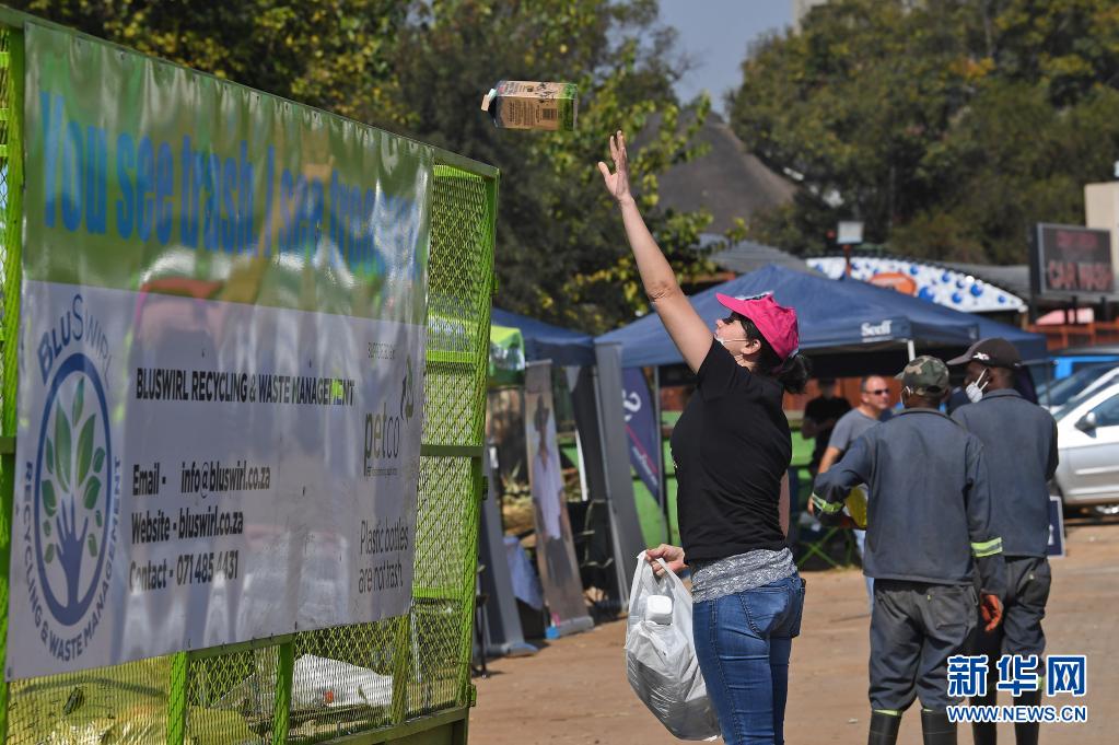 4月22日,南非比勒陀利亞的志愿者將可回收垃圾放入指定地點。