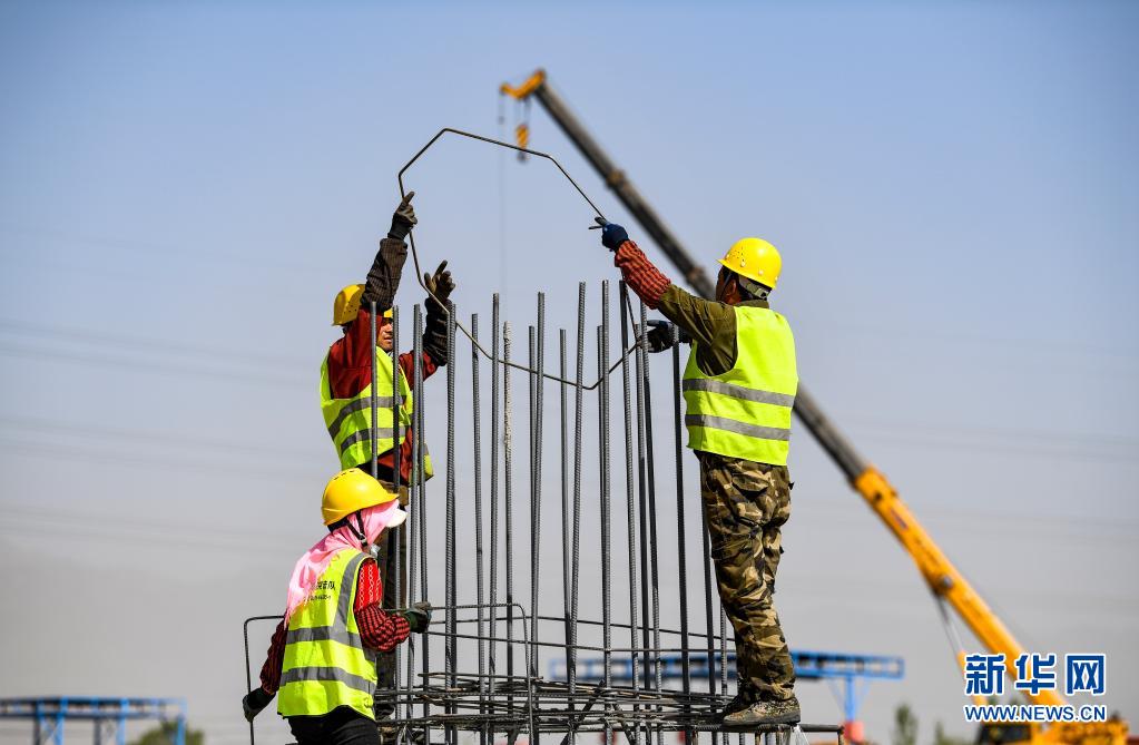 5月1日,寧夏銀川市經(jīng)濟技術(shù)開發(fā)區(qū)中環(huán)50GW(G12)太陽能級單晶硅材料智慧工廠項目的工人在現(xiàn)場作業(yè)。