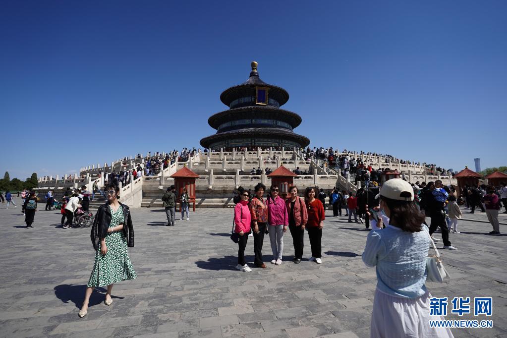 “五一”期間,許多游客來到北京天壇公園參觀游覽,樂享假期生活。