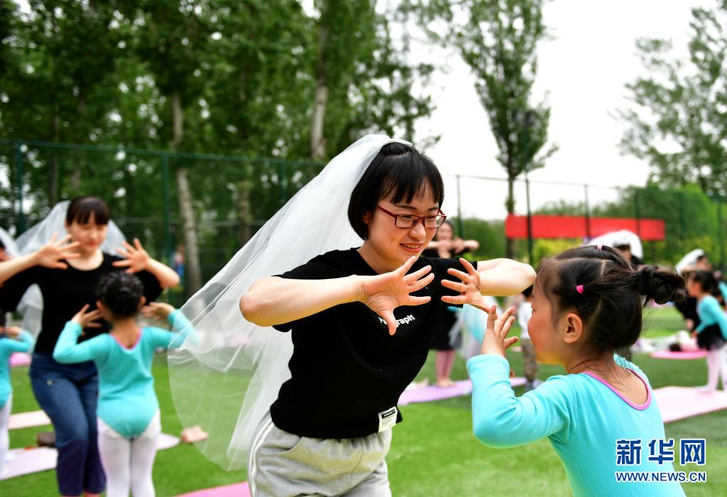5月9日,在河北省邯鄲市館陶縣奧林匹克公園舉行的母親節(jié)主題活動(dòng)中,媽媽與孩子一起做親子游戲。