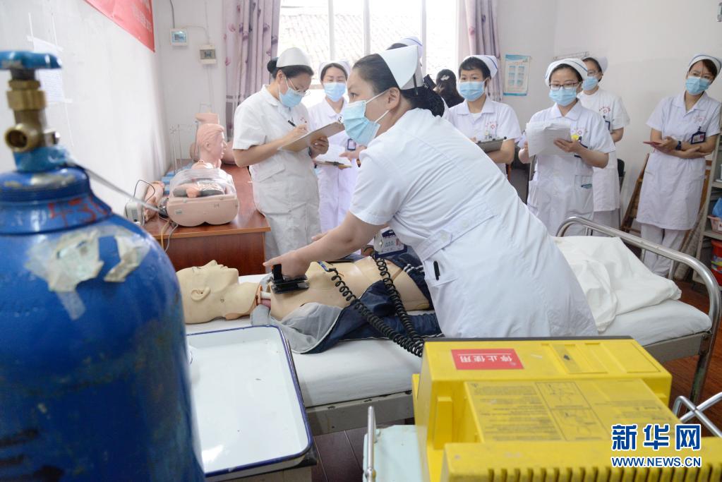 5月11日,江西省撫州市南豐縣人民醫(yī)院的護(hù)士在進(jìn)行除顫技能競賽。