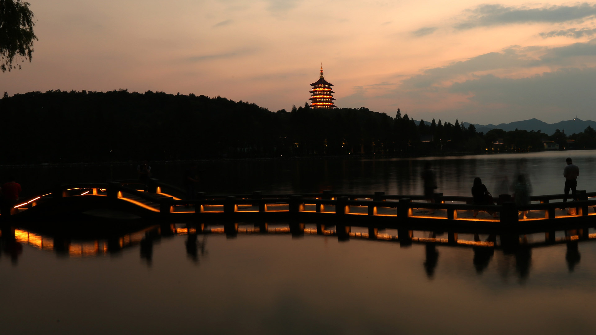 杭州西湖夜景(8月31日攝)。臨近G20杭州峰會,杭州夜色柔美,燈光璀璨。9月4日至5日,二十國集團(G20)領導人第十一次峰會將在浙江杭州舉行。 新華社記者殷剛攝