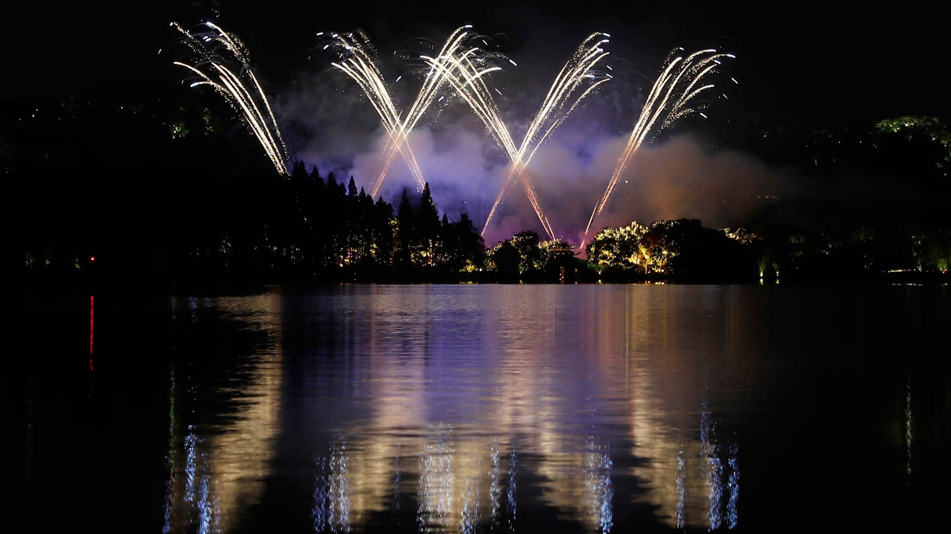 8月30日晚,美麗煙花在杭州西湖畔綻放。新華社記者陳建力攝