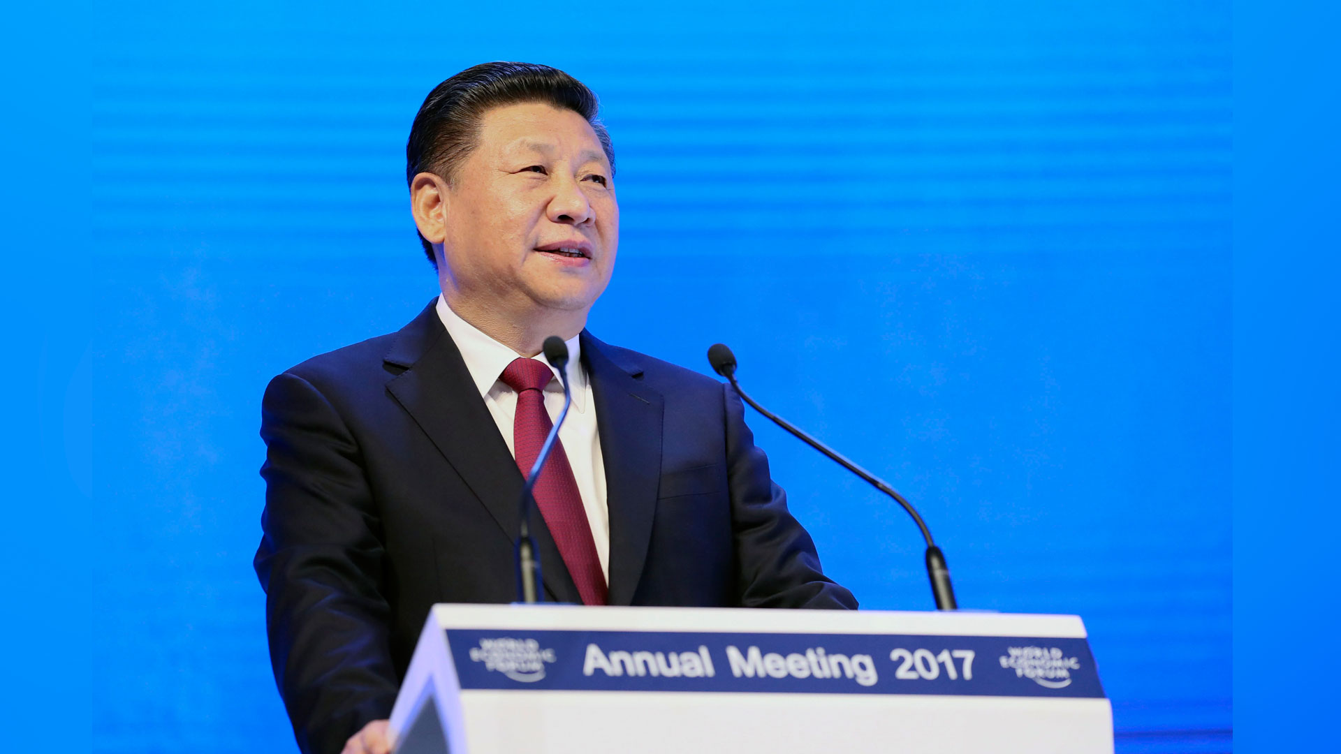 1月17日,國(guó)家主席習(xí)近平在瑞士達(dá)沃斯國(guó)際會(huì)議中心出席世界經(jīng)濟(jì)論壇2017年年會(huì)開幕式,并發(fā)表題為《共擔(dān)時(shí)代責(zé)任共促全球發(fā)展》的主旨演講。 新華社記者 蘭紅光 攝2017-01-18