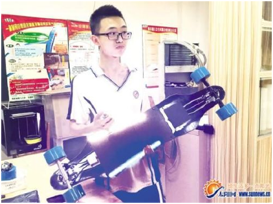 當?shù)貢r間5月8日至15日,在美國鳳凰城舉辦的第67屆國際青少年Intel科學與工程大獎賽(ISEF)上,來自全球75個國家和地區(qū)的1750名學生參賽。其中,中國廈門第六中學的蔡煒楨、顏明等研發(fā)的“帶碟剎藍牙無線遙控電驅(qū)動滑板”榮獲三等獎,創(chuàng)造了中國大陸代表隊在國際青少年科技競賽“世界杯”上的最好成績。