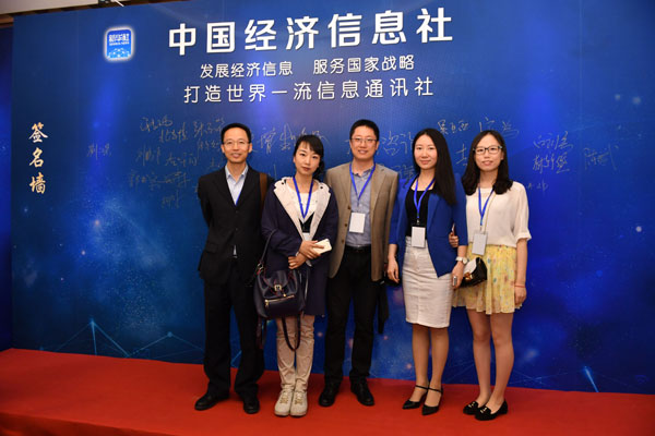 圖為2016年中國經(jīng)濟信息社掛牌,記者和國資委、央企嘉賓合影(右二)??