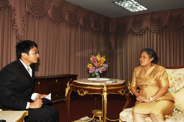 ?圖為2008年記者在泰國(guó)曼谷王宮采訪泰國(guó)公主詩琳通