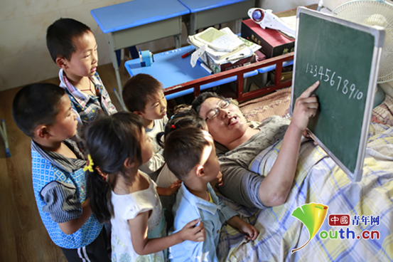 由于葉海濤的雙下肢關節(jié)僵直,沒有辦法筆直地坐著,他便躺在病床上,側著身子用小黑板給孩子們講解題目??墒沁@樣一來,躺的時間一旦久了,葉海濤的身體便會全都麻木,疼痛難忍。但他卻始終堅持著……最難熬的是夏季,他睡在板床上長時間保持同一個姿勢,全身都被汗水浸透了,額頭上黃豆般大小的汗珠不斷地冒出,滾落到板床上,床面已經被浸濕。常人都難以忍受,更何況是患病在床的葉海濤呢?在這種異常難受的狀態(tài)下,葉海濤憑借自己驚人的毅力,克服困難,十八年如一日,堅持為孩子們輔導功課。這份教學工作,是繁雜的,須深入學習、不斷鉆研,研究教學思路。為了更好地勝任這份輔導任務,他經常在空余時間閱讀有關教育方面的書籍。