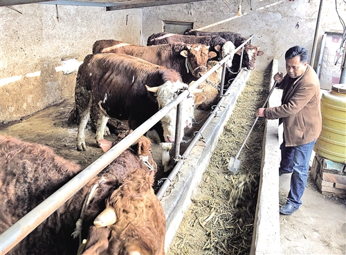 在李進(jìn)禎幫扶下,建檔立卡的貧困戶馬俊通過養(yǎng)牛,走上脫貧致富之路。(資料圖片)