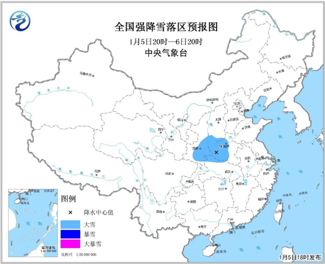中央氣象臺1月5日18時再次發(fā)布暴雪藍色預(yù)警。