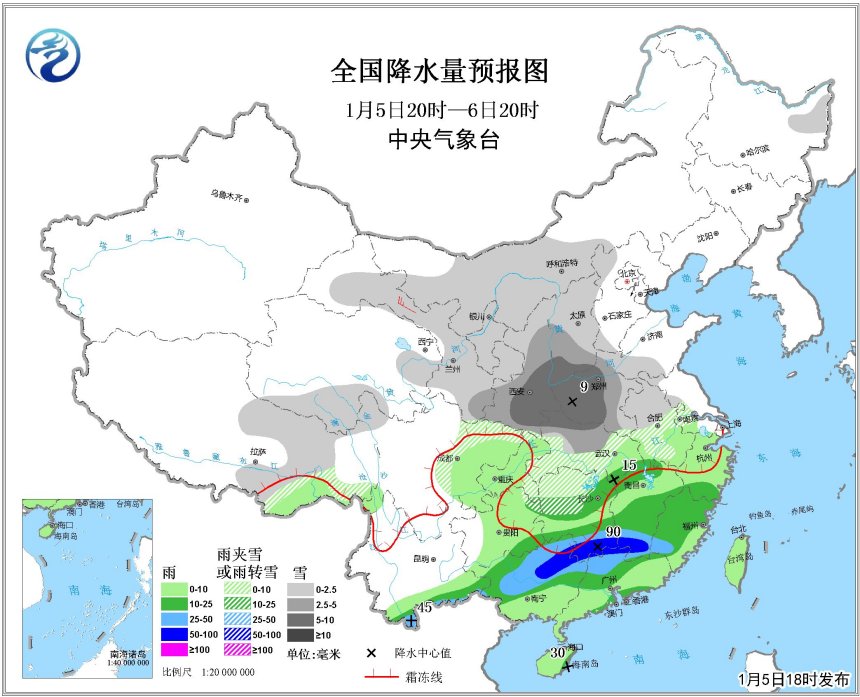 新華網(wǎng)北京1月6日電 ?經(jīng)過短暫的間歇期,1月5日夜間至8日,我國中東部地區(qū)將再次出現(xiàn)低溫雨雪天氣。中央氣象臺于5日18時發(fā)布暴雪藍色預(yù)警。新一輪低溫雨雪天氣主要影響那些地區(qū)?有哪些特點?后續(xù)天氣形勢如何?1月5日,記者就這些問題采訪了中央氣象臺首席預(yù)報員馬學(xué)款和國家氣象中心農(nóng)業(yè)氣象中心正研級高級工程師宋迎波。