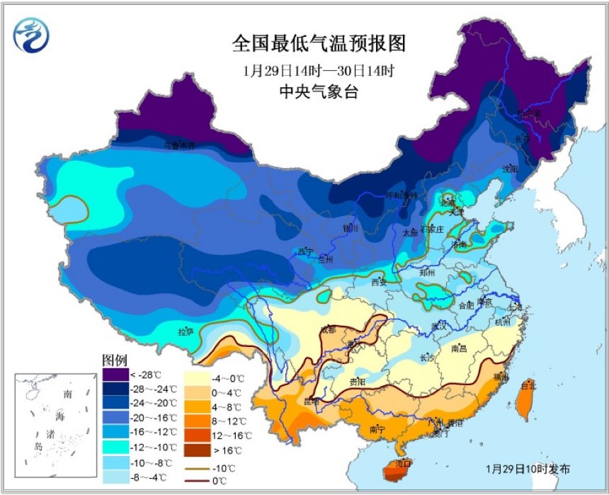 1月29日,中央氣象臺繼續(xù)發(fā)布寒潮藍(lán)色預(yù)警。根據(jù)中央氣象臺預(yù)報,預(yù)計2月5日以前,影響我國的冷空氣活動頻繁,且勢力較強,中東部大部地區(qū)氣溫較常年同期依然偏低。