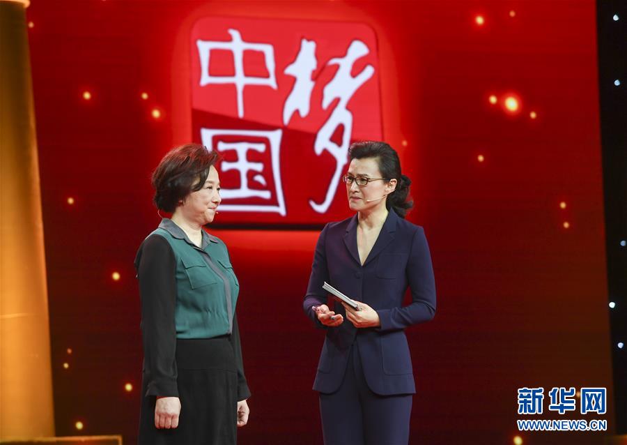 鐘揚(yáng)的妻子張曉艷(左)在“時(shí)代楷模”發(fā)布儀式現(xiàn)場(chǎng)(3月26日攝)。新華社發(fā)